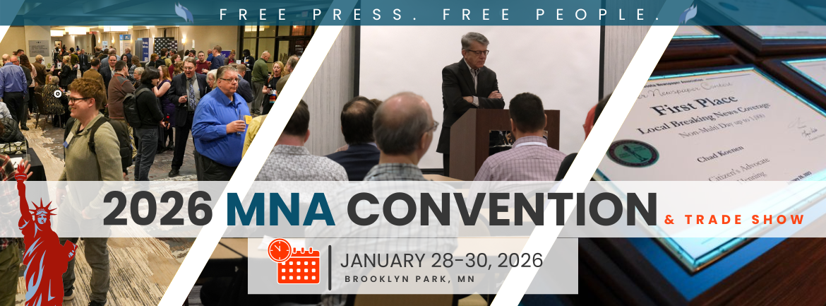 One of the top state news media association conventions in the United States, the 2026 Minnesota Newspaper Association Convention & Trade Show is happening Jan. 28-30, 2026, at the Minneapolis Marriott Northwest, Brooklyn Park. Late registration is STILL AVAILABLE.