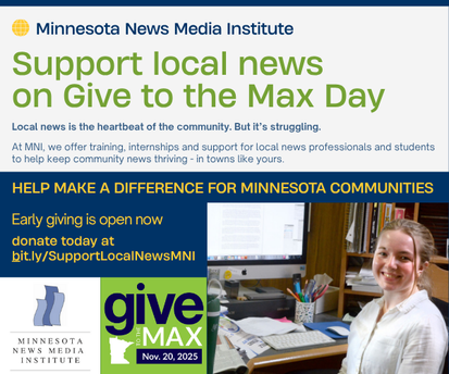 Funds raised for the Minnesota News Media Institute are used at the discretion of the MNI board to support our work on behalf of MNA members and local news across Minnesota. All donations are tax deductible; MNI is MNA’s 501(c)3 nonprofit.